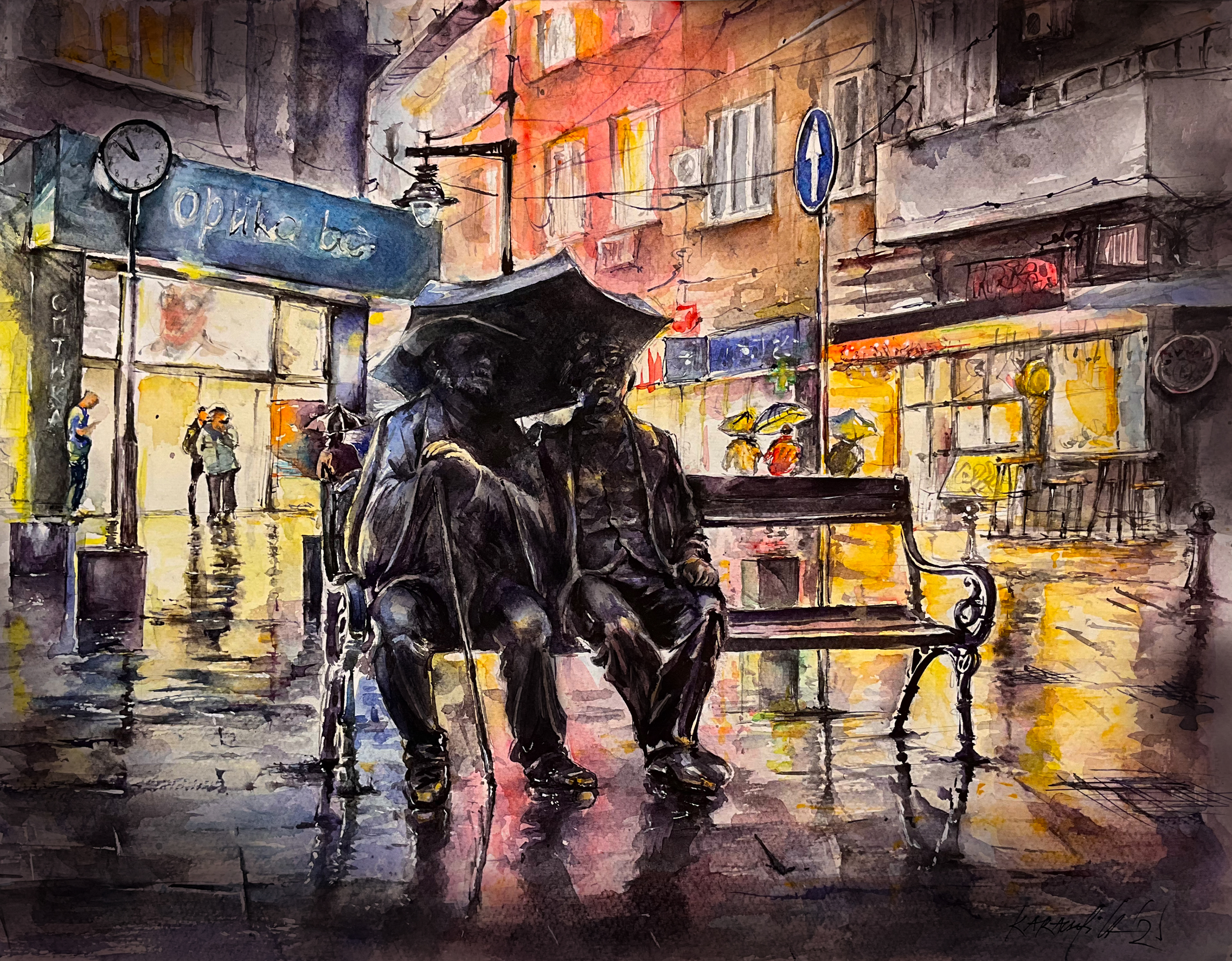 At Slaveykov Square in the Rain